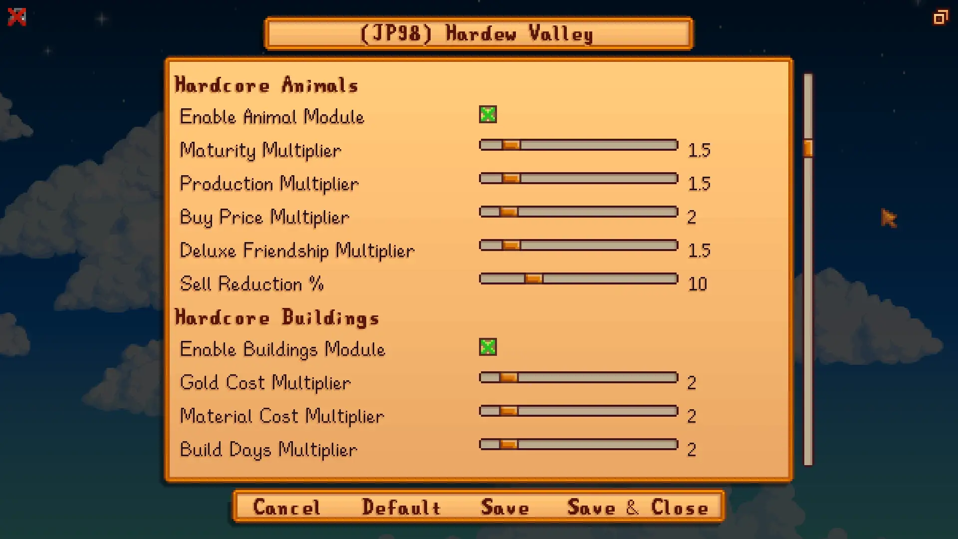JP’s Hardew Valley introduces a harder difficulty mode to Stardew Valley, where you can modify different aspects of the game to make them more challenging for you.