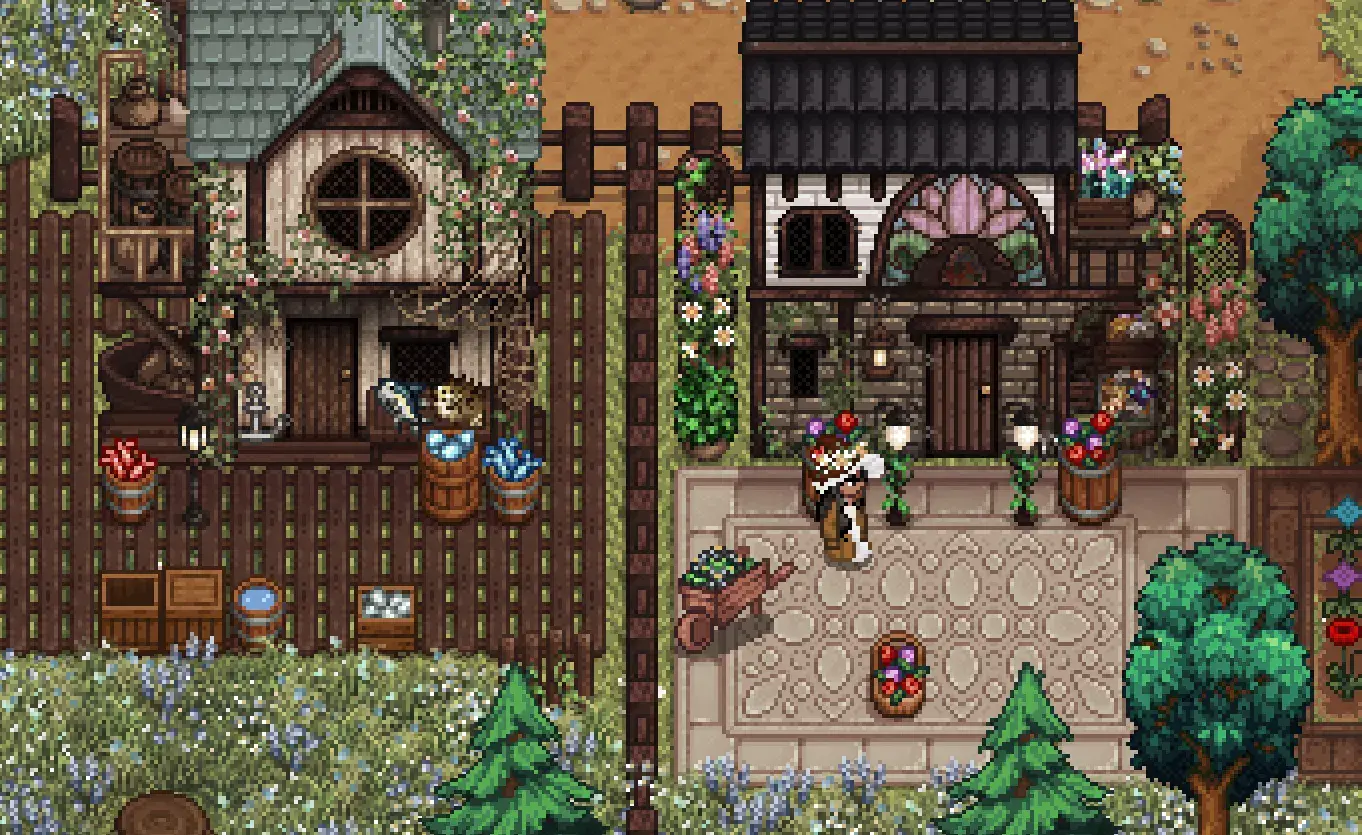 Actually a large collection of mods, Aesthetic Valley Witchcore transforms the game's various clothes, buildings, and other assets to adopt a more 'witchy' vibe, almost like you're transforming Pelican Town into a Studio Ghibli location.