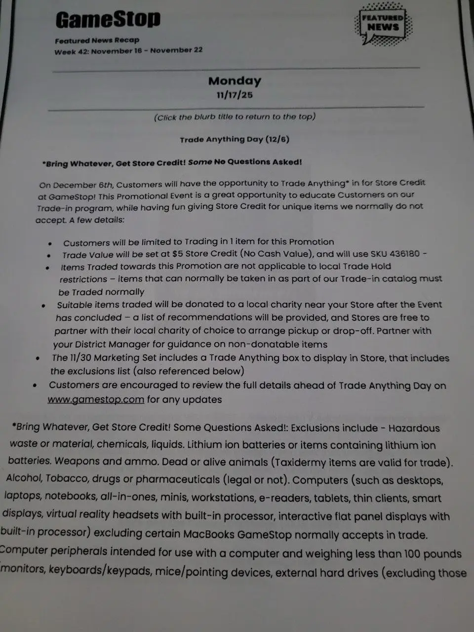 The Trade Anything Day notice was recently shared over on r/GameStop and lists some pretty obvious concerns.