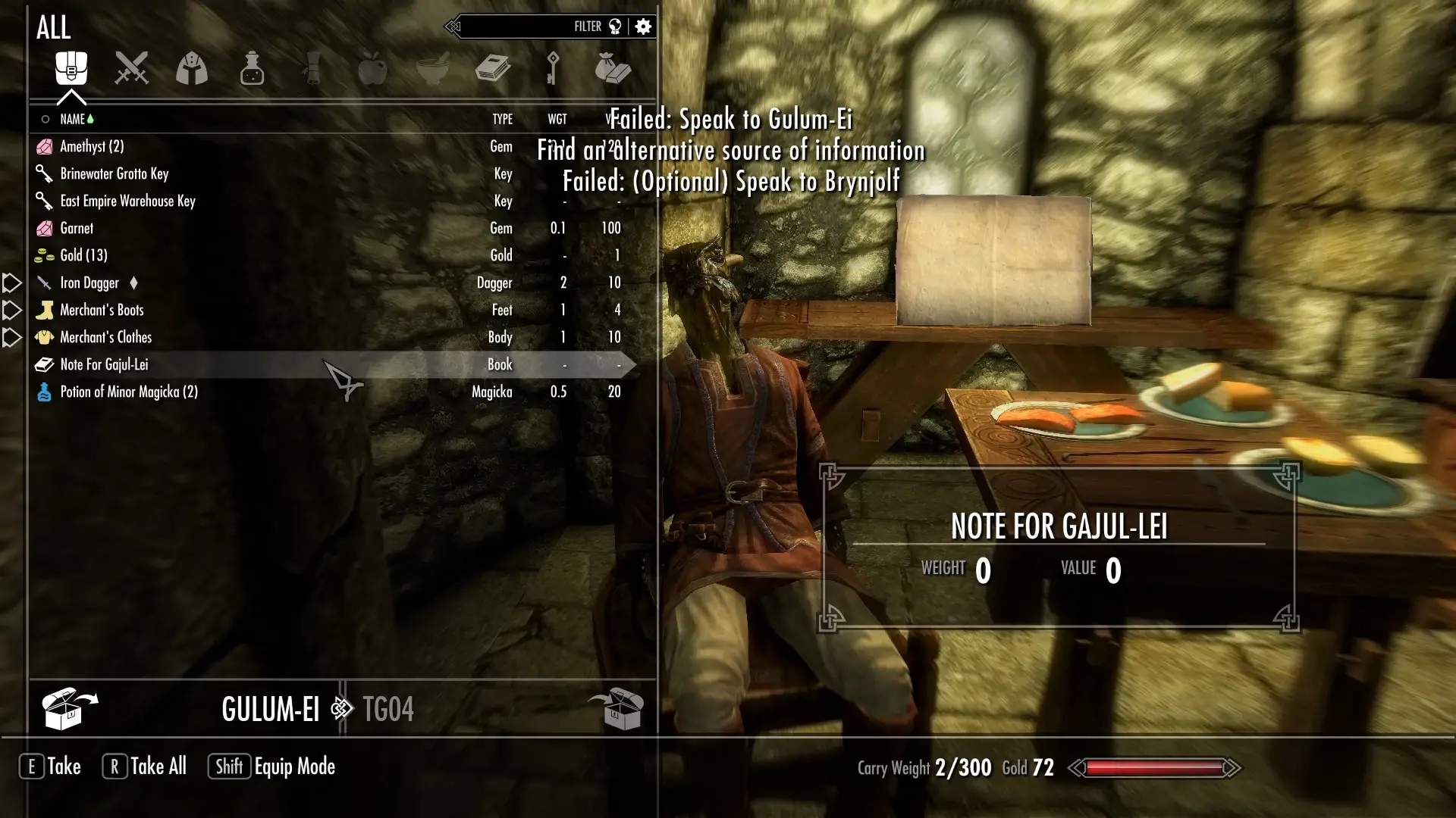 How it does this is in several ways. For starters, the overhaul makes Gulum-Ei an unessential NPC from the start of the game, so if he dies before you start the quest Mercer Frey will instead ask you to look for clues in the East Empire Company Warehouse.