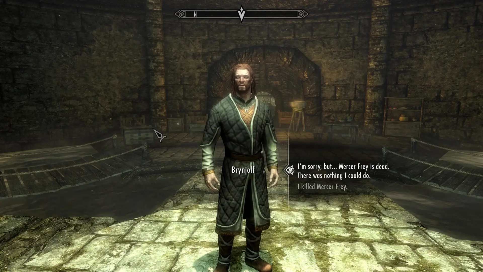 “This mod inception stems from a mad idea,” writes Flowrifto. “What if Skyrim let you kill anybody AND responded to your choices to the best of its abilities? I made a couple of mods for myself with some simple NPCs tied to a single quest... And then I tried to handle the fate of Mercer Frey. I don't really know why. But here we are.”
