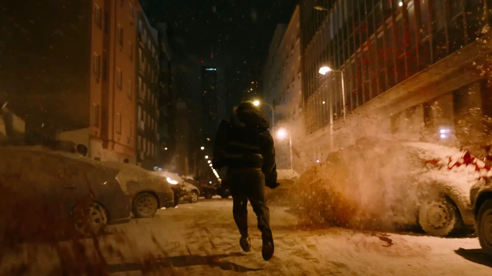 The man is then shown running away from an unseen danger, seeking refuge in a barn and find a shotgun for protection, before cutting to same man now in a city.