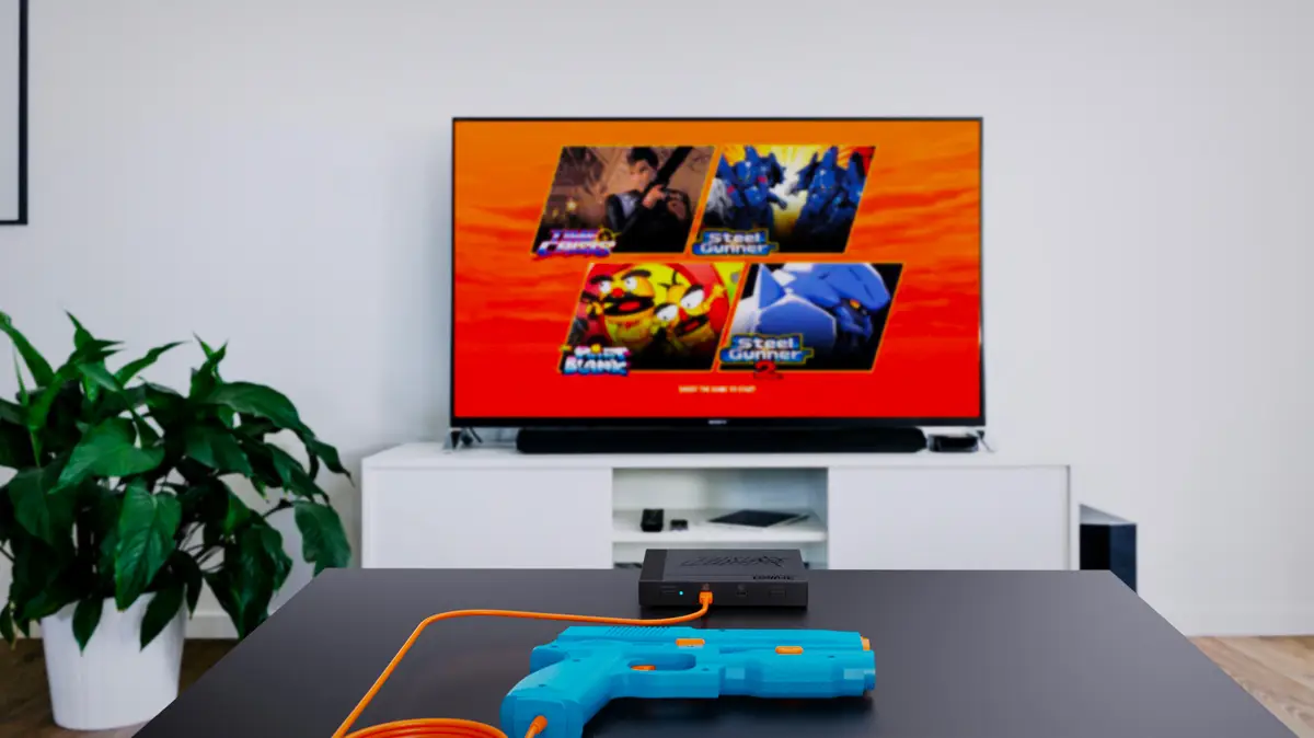 After an initial calibration, you’re thrown into the menu, where you can play Time Crisis (along with a few other titles, if you’ve bought one of the more expensive editions). And it looks beautiful on modern screens.