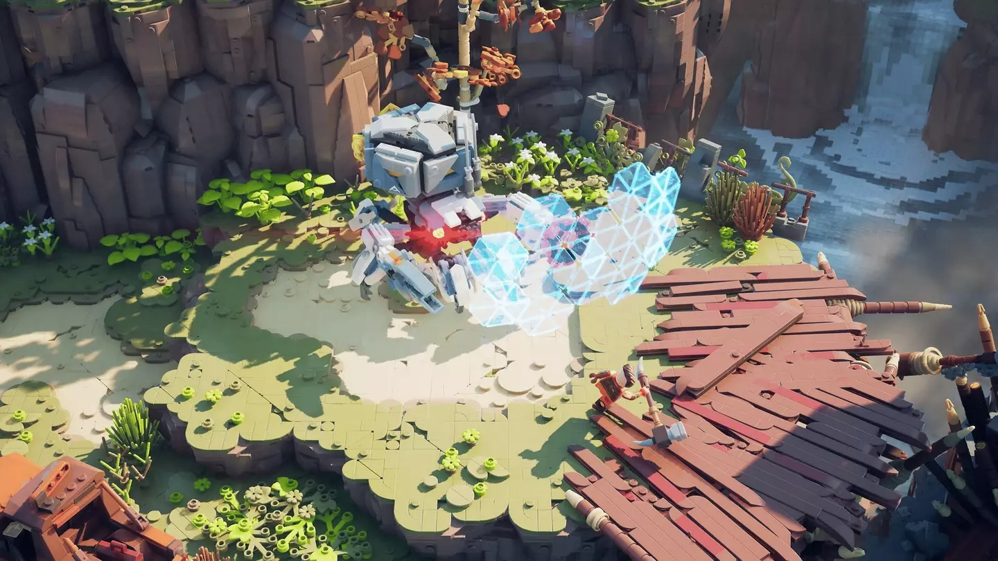 For the most part, LEGO Horizon Adventures recounts the events of Aloy’s original adventure albeit with a few subtle edits to streamline the narrative. You’ll see Aloy face off against the Eclipse cultists, led by Helis, as well as AI villain HADES, although this time around, Aloy is exclusively based out of Mother’s Heart. Teaming up with Varl, Erend, and Teersa, the group will venture out to defeat machines and cultists, using the bricks they acquire from doing so to help rebuild the village.