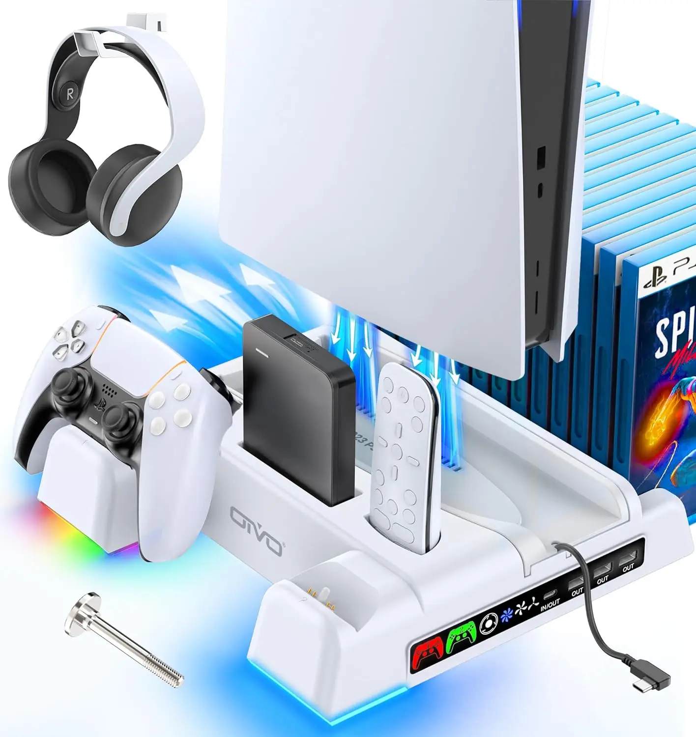 Not only does it keep your wireless controllers charged but it can also charge everything from your headsets to your external hard drive, while helping to keep your physical discs – with space for up to 14 games – neatly organised, as well.
